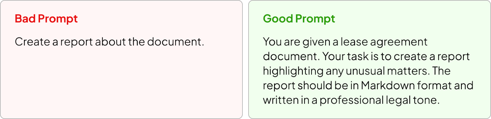 Baking a cake without a recipe? You’d probably struggle! It’s the same with AI—it works best with clear instructions. Be specific about what needs to be done, the provided input (if any), the tone you want, the level of detail, and the preferred format.